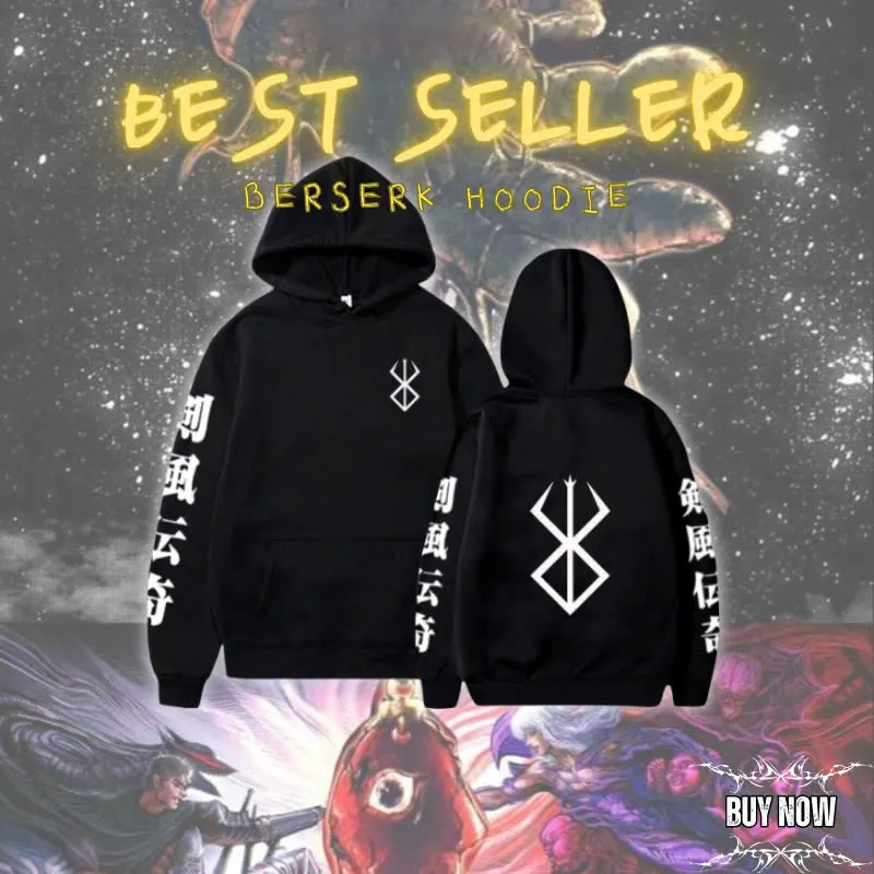 The Berserk Best Seller Hoodie is a must-have for fans of Kentaro Miura’s legendary manga series.